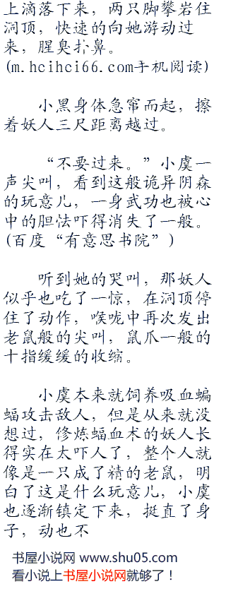 小虞仰头望去,不由得大吃一惊,再次一声尖叫,身体急速的靠在石壁上,倒抽了一口凉气。