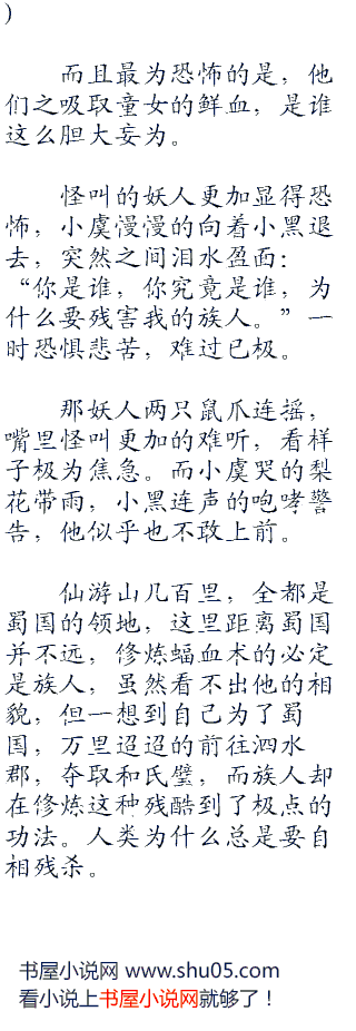 小虞又是害怕又是恶心,蝠血术是南疆之中最诡异的一种法术,修炼之时需要将吸血蝙蝠的毒素注入身体之中,而且每天吸食人类的鲜血,才能维持生命,极度残忍,已经被列为蛮疆禁术,修炼者杀无赦。