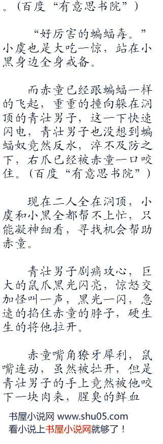 “砰”的一声,吸血蝙蝠的身体撞击在洞壁之上,一口鲜血狂涌而出,在也顾不上和壮年男子搏斗的小黑,吱吱怪叫着扑向青丝囊。