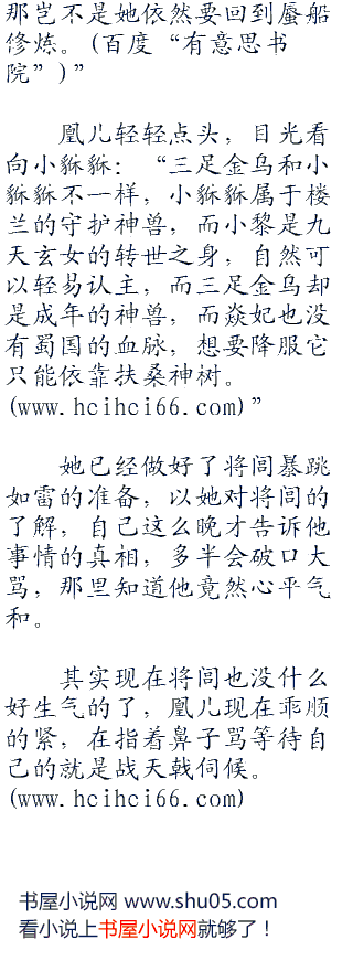凰儿任由他握住自己的小手,微微一笑:“三足金乌虽然是神禽但也是凶兽,焱妃想要彻底的掌控它,必须在扶桑树下修炼,才能让它彻底认主。”