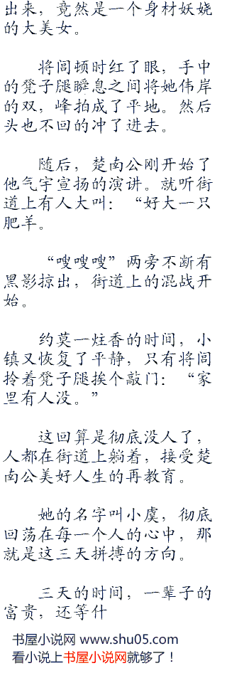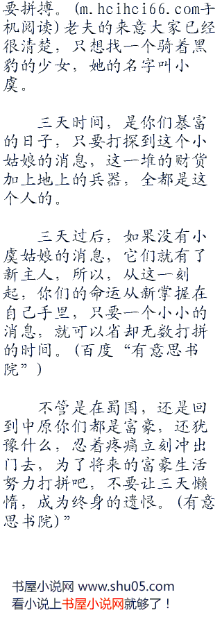 “想想蜀国王宫的宝藏。”楚南公循循善诱:“将来可都是你的。”