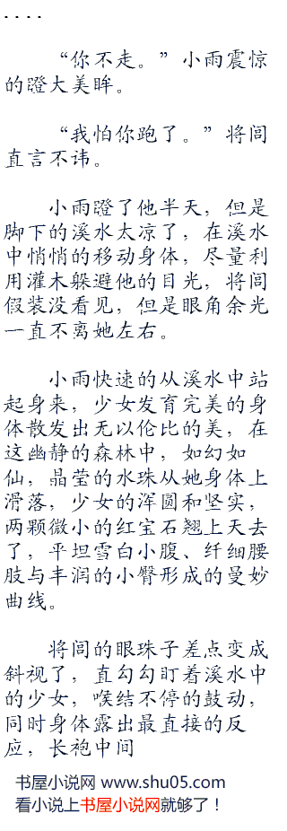 “你可不可以先躲开,我先穿上衣服。”溪水冰凉,小臀泡在水中冷飕飕的,小雨可怜兮兮的叫道。