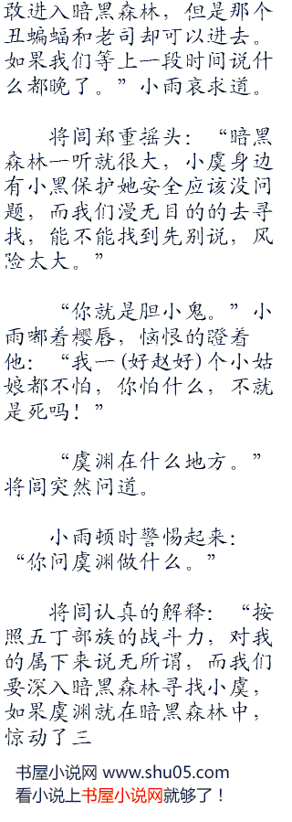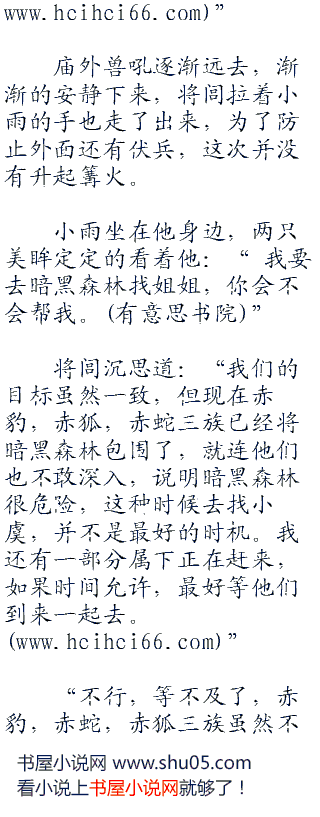 小雨一边听一边说:“外面的是赤蛇和赤豹,赤蛇说,今天还有人看见我,所以才一路追来。