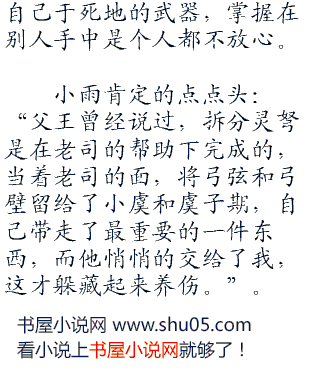 小雨幽幽一叹,仰头看着飘雨的夜空,好半响才道:“因为灵弩。”