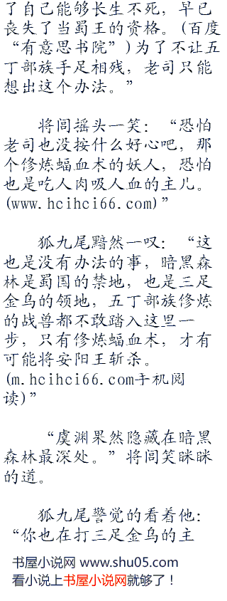 狐九尾嗤嗤娇笑:“当年远在巴蜀的蜀国被大秦所灭,安阳王带着残存的族人,来到祖先生活的仙游山,从那时候起,安阳王就让五丁部族献祭童男童女给三足金乌。”