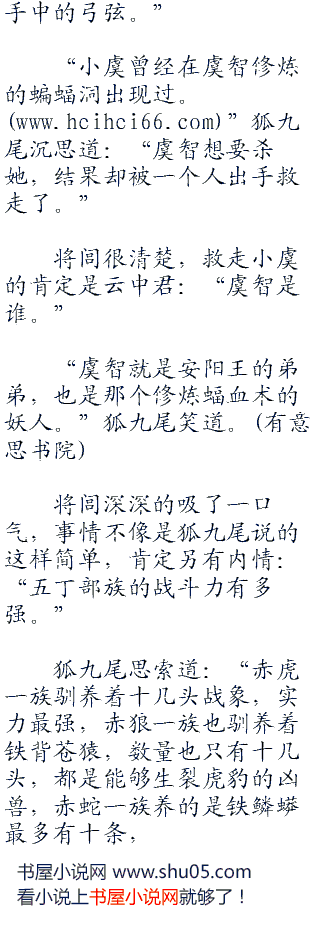 狐九尾吓了一哆嗦,追问道:“她也是你的女人。”忽然之间又垂下泪来:“原来你真的是为了三足金乌而来。”