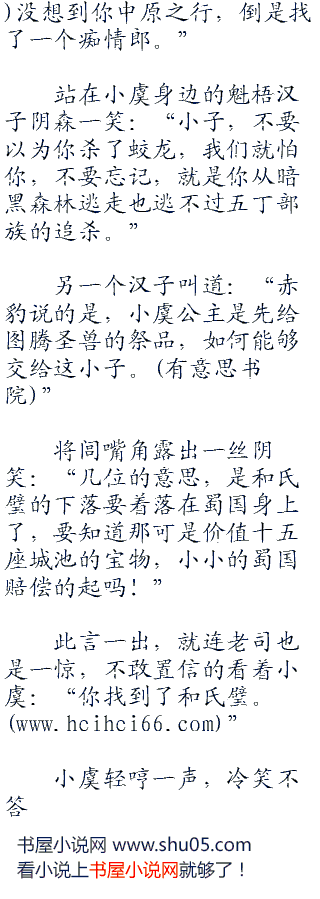 “我是守护暗黑森林的虞渊护卫。”将闾目光看向小虞:“放了她,我绕你们不死。”