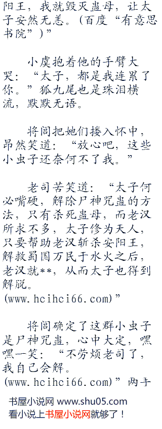 将闾心中一动,骤然想起了什么,扭头看向小虞问道:“尸神咒蛊是蜀国的术法?”