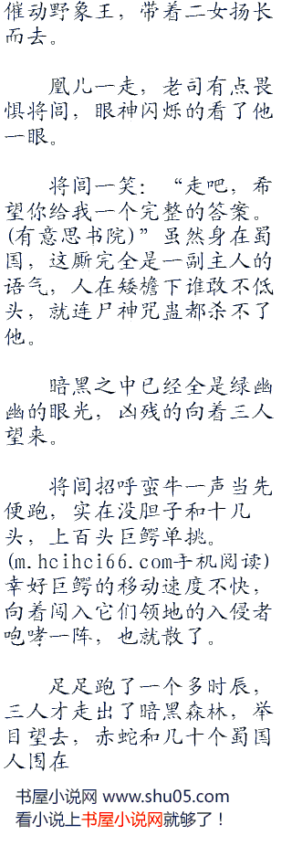老司看了一眼凰儿,见她一言不发眸光全都落在将闾身上,一声叹息:“蜀国虽然天气炎热,但也有落雪的时候,一旦天气寒冷起来,震泽蛟龙就会藏在洞穴之中隐藏不出,这是唯一能够进入虞渊的时间。”