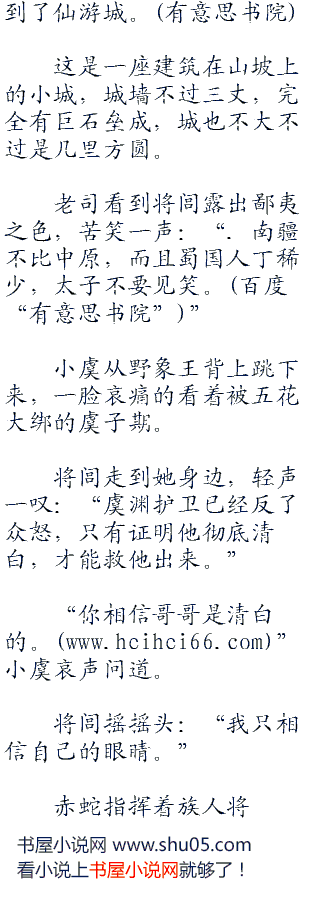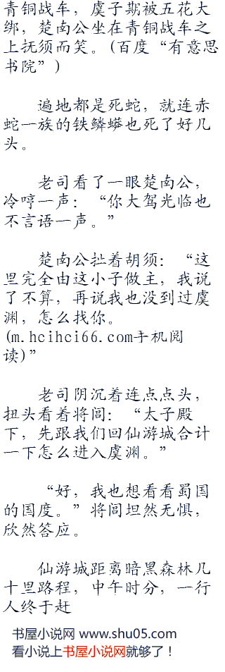 小虞和将闾的约定就是蜀国王室臣服大秦,将闾收兵不在攻伐。但言外之意,如果老司之言是真的,虞渊护卫也没有存在世上的必要了。