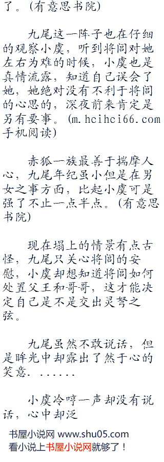 将闾愁眉不展,赤虎却放下了心事,嘿嘿笑道:“赤狐一族的女子,不仅聪明绝顶还有一身冠绝天下迷死人不偿命的媚功,九尾是赤狐的嫡传弟子,一定更加了的。”