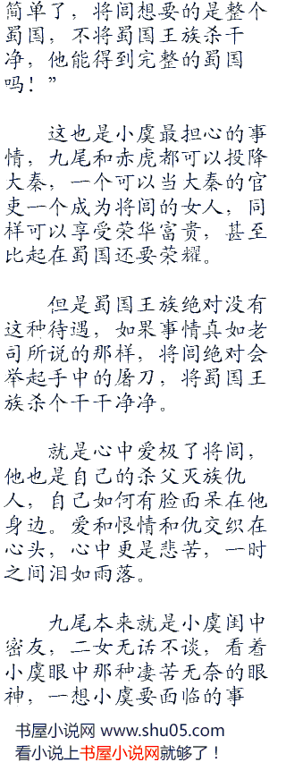 将闾郑重的看了他一眼:“中原的规矩很多,不是蛮夷蜀国可比的,今天我告诉你,就是让你记住,九尾现在已经是我的女人,在我心中她已经不是蛮族之女,而是大秦真正的贵族,不是任何人都可以对她说三道四的。
