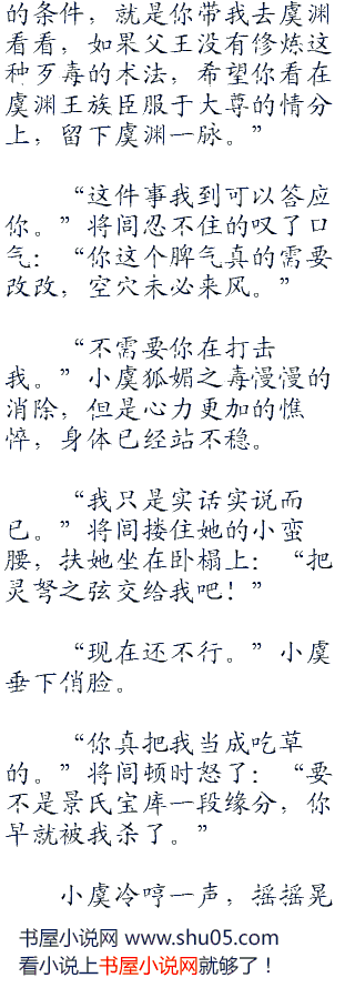 将闾变脸小虞也是心寒,将闾征服屈景项三族的手段完全灭掉一个族群,如果他狠下心来,蜀国覆灭也在弹指之间,没有什么比起兵魔神更加震慑人心。