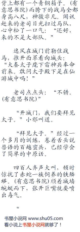 尤其是身边女人众多,每个人都需要侍婢和护卫,而赤狐一族的女子就成为最好的选择。只有将百越诸族的精锐战士控制在手中,才能让百越诸族不敢叛乱。