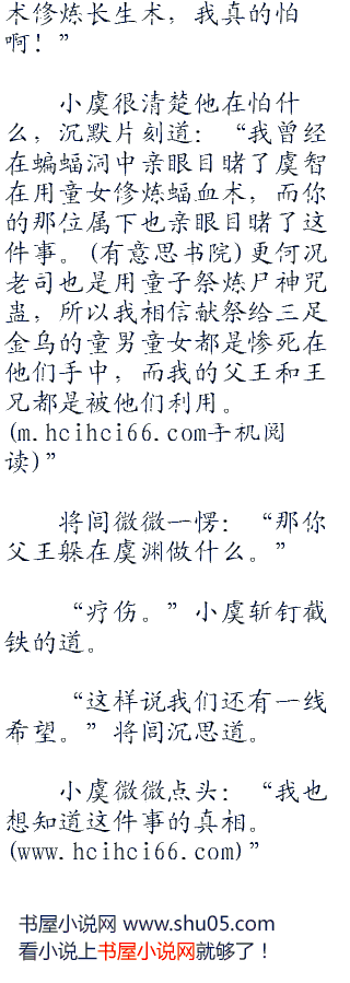 但是逃又能逃到那里去,更何况小虞也想揭开虞渊的谜团。那个慈祥和蔼的父王,一心为了让蜀国强大起来的父王,究竟有没有拿童女修炼长生术。不弄明白小虞如何甘心。