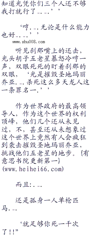 好似没有察觉到道服五老星那种锐利的眼神一般,听见他所言的话语之后刹那无谓的扬了扬自己的眉头,还顺带耸了耸肩,.不.…你们代表不了这个世界…,’