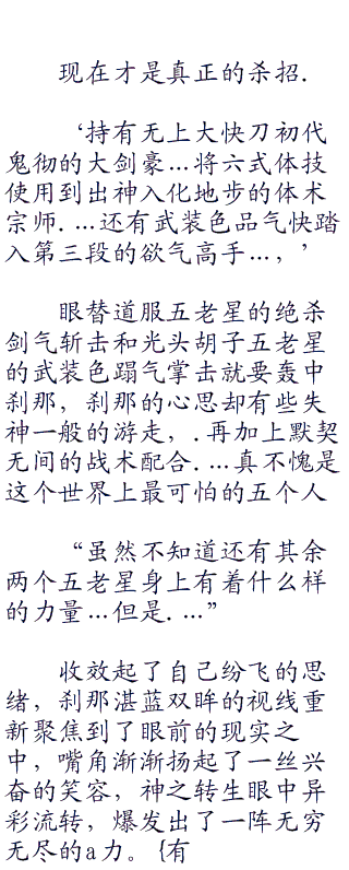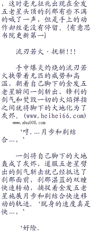 轻轻飘落到被自己轰击出的深坑边缘,金发五老星像鹰华一样锐利的双眼左右搜寻着刹那的身影踪迹.