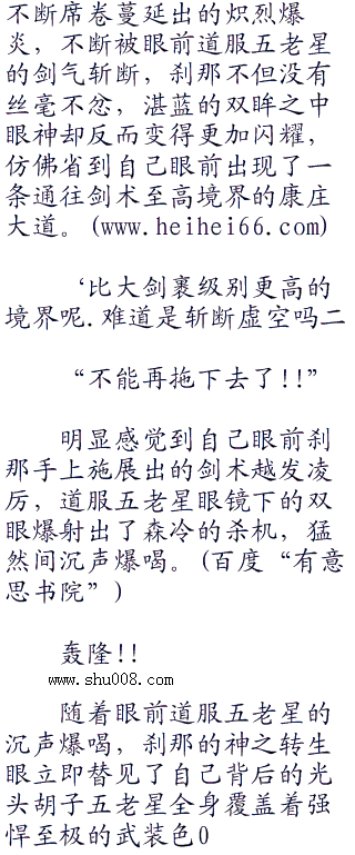 在和道服五老星瞬息万变的剑术交手之中,刹那湛蓝双眸之中的光华却愈加发亮,冥冥之中他仿佛渐渐体悟出了一丝丝前所未有的感会,“这就是大剑斑级别的剑道境界么…,’