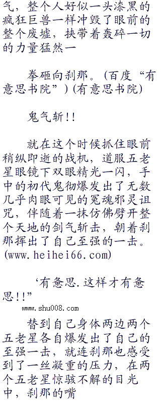 越是和刹那交手下去,道服五老星的心中越是吃惊,在剑术的等级上他可以很清晰的察觉出刹那和他之间还相差了一个等级。。 ww w ..co m
