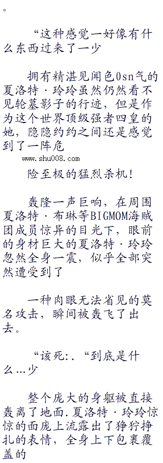 &#;bigmom,夏洛特·玲玲庞大的身躯灵活至极的好似瞬移一般骤然出现在了刹那的头顶,巨大肥壮的手臂包裹着漆黑狰狞的武装色霸气猛然轰击在
