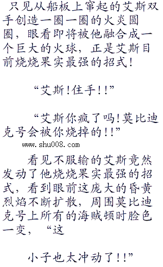 但是显然此时的艾斯还不能够熟练的掌控自己的a气,莫比迪克号上一部分实力较差的船员直接被他震晕了过去。