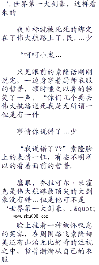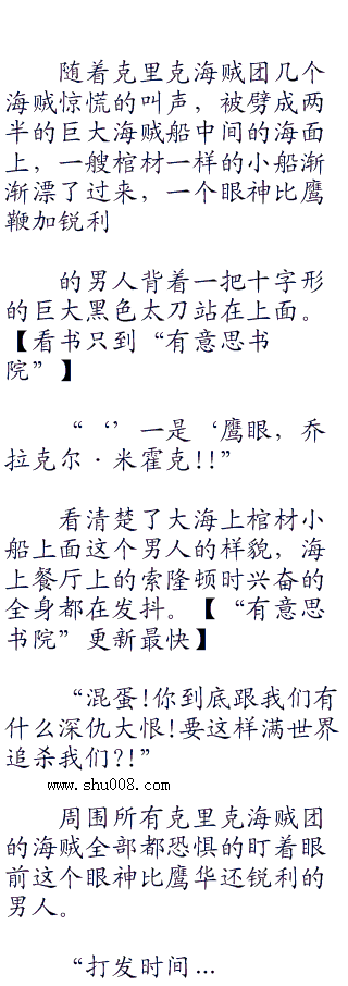 “不会错了.…拥有像鹰一样锐利的眼神.…还能够一个人轻易的干掉艘海贼船一少