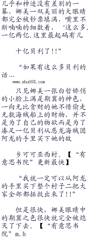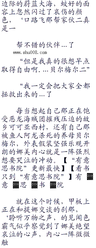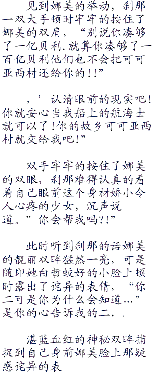 心里想着想着,娜美忽然有些忧伤的自嘲了起来,一双原本闪烁着机智狡黯之色的大眼睛看着眼前漫无