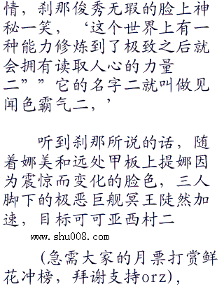 就在刹那和提娜两人在甲板上交谈的时候,冥王船舷边上的娜美也.五九三,.在暗暗打量着他们两人,心里泛起了一阵疑惑,‘.海军为什么会跟这个男人待在一块?!”