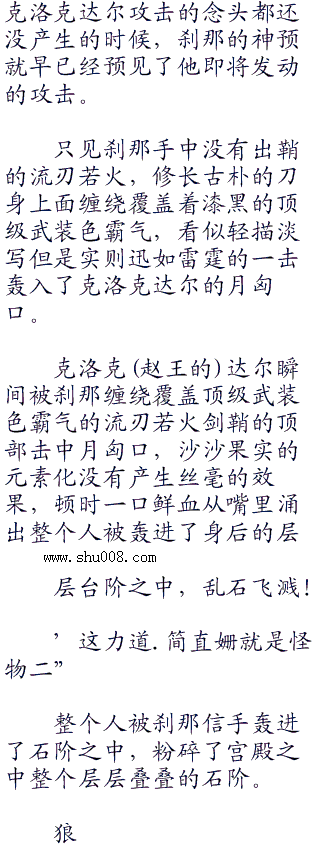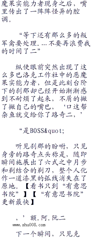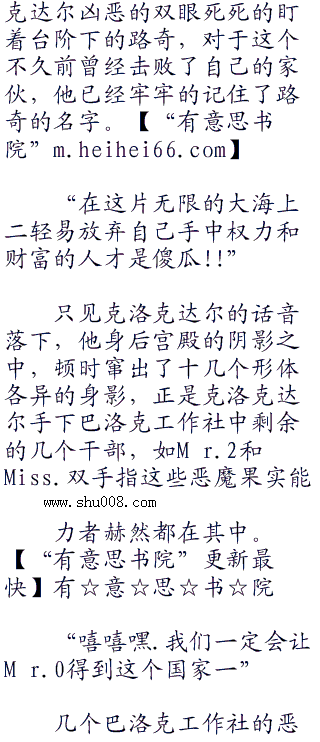 这个时候之前不久还跟克洛克达尔交过手的路奇,沉静的面容上也挂着一丝椰榆的神色看着眼前台阶上的克洛克达尔,‘.我想我已经看见你接下来凄惨的样子了二沙鳄鱼二,.