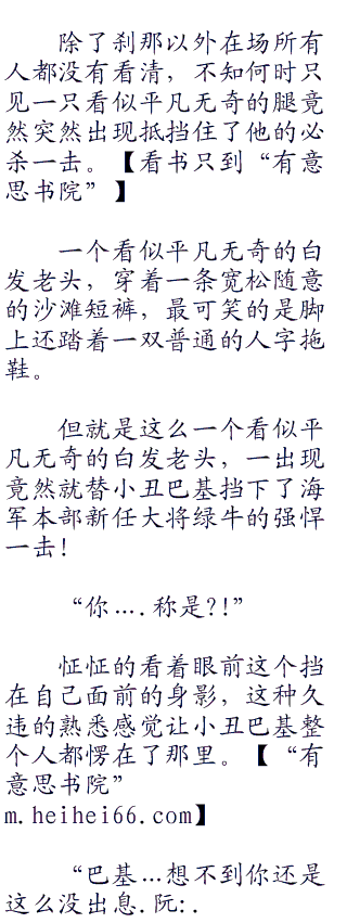 只见大将绿牛巨大魁梧的身躯再次出现的时候,已经瞬间拦在了正欲悄悄逃走的小丑巴基的面前,顿时吓得小丑巴基整个身体四分五裂了起来。有┅意┅思┅书┅院