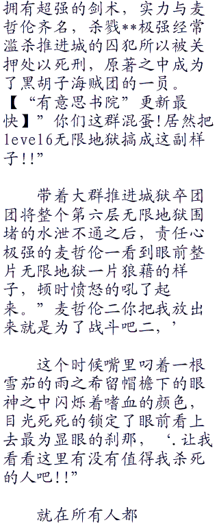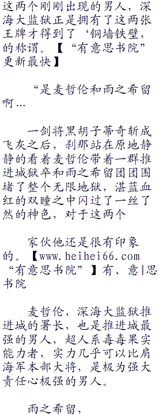 见到这个头上长着两只尖角背后挂着一对恶魔之冀好似撒旦的高大男人,带着一帮推进城狱卒来到了最终层的无限地狱中之后,顿时周围所有关押的凶恶罪犯全部发出了声声喧哗。有*意*思*书*院