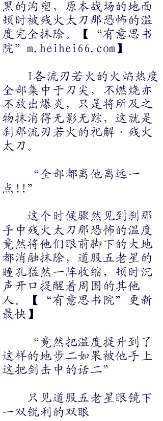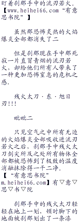 在场所有顶级的高手全部都眼睁睁的看着眼前那原本无边的炽热火焰,全部都被吸收进了刹那手中流刃若火的刀身之中.