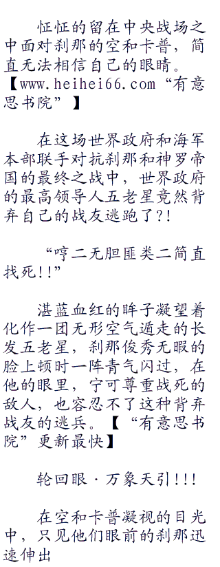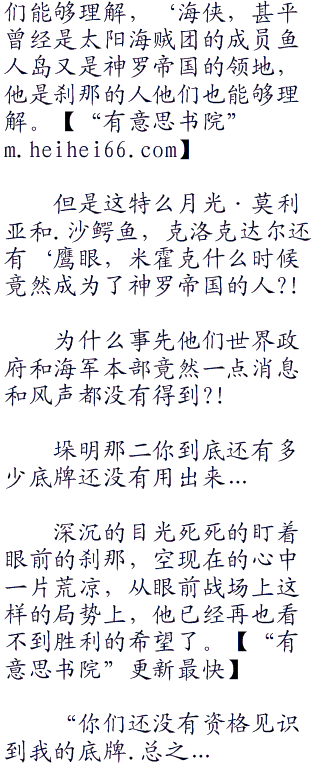 一剑杀死了多佛朗明哥之后,突然耳朵里听到克洛克达尔的冷嘲热讽,鹰眼米霍克顿时再次抓住了自己‘黑刀.夜的刀柄,犹如鹰集的双眼之中进发出了一阵凌厉的光芒。有 ﹉意 ﹉思 ﹉书 ﹉院