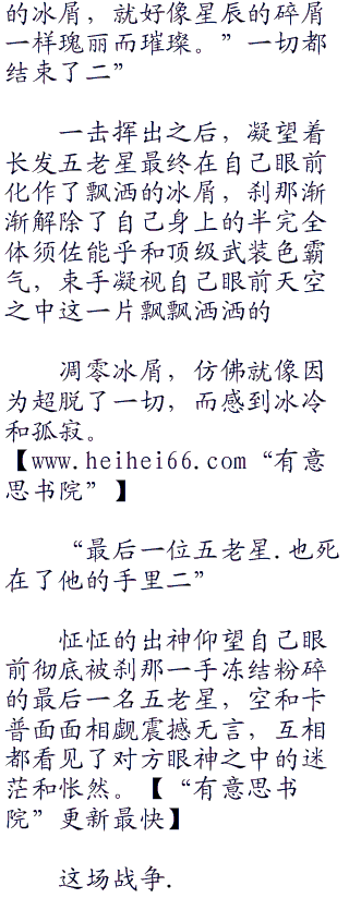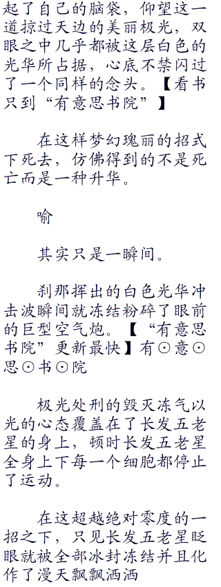 顿时四周所有的空气凝结,超越绝对零度的冻结之力瞬间形成了一道白色光华的冲击“四二零”波,飘洒如同雪花一样,也如同星辰一般梦幻美丽。