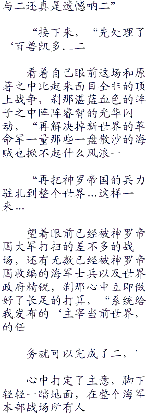 以为意的笑笑,‘.不过今天陛下交给我们的任务是只需要拖住你们百兽海贼团就可以了二”