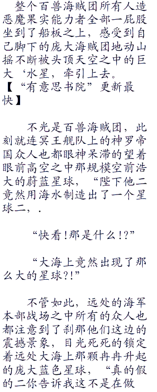 刚刚赶到海岛岸边正欲抛锚搁浅上岸支援凯多的百兽海贼团数百个人造恶魔果实能力者,见到凯多被刹那炮弹一样轰飞,眼前的整个岛屿瞬间在他们面前被刹那一击轰入海底。有↙意↙思↙书↙院震惊的