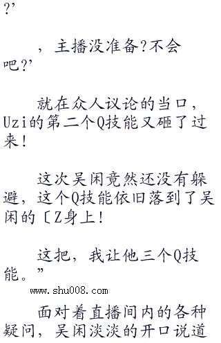 省得出来,Uzi的实力强大已经深入人心了,不但狗吹们坚定的认为Uzi会获胜,就连经常观看吴闲直播的观众们也有不少不看好吴闲的,认为这把他很可能会输。