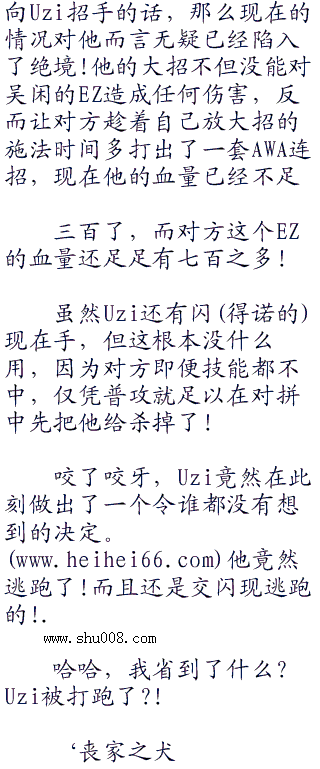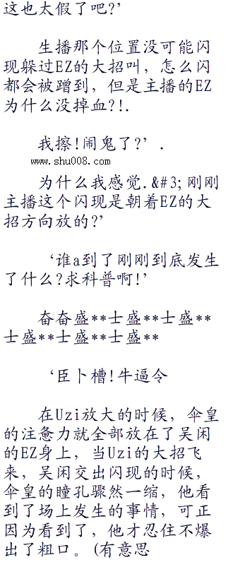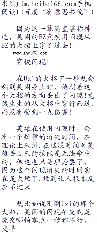 见到屏幕上闪过的黄光,Uzi脸上路出轻蔑的笑容。这时候交闪现有什么用?早干什么去了?可是就当Uzi认为吴闲这个闪现只是白白浪费的时候,屏幕中发生的事情却完全超出了他的预料与认知!