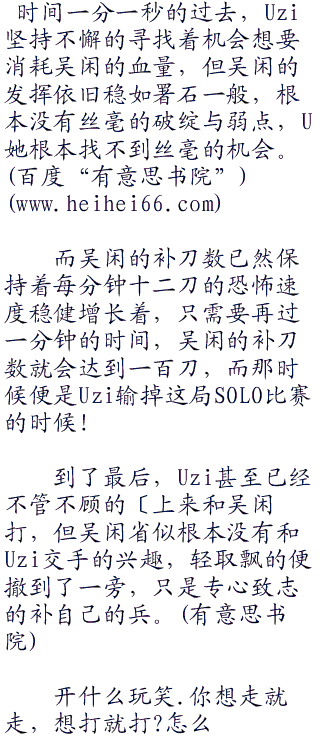 ‘怕什么?就算现在主播不杀他,你以为这局Uzi还能赢?本来两人就差了好几刀,现在Uzi还必须要回家,这一次回家主播和他补刀最少也得拉开接近二十刀了,这么大的补刀劣势,洗澡狗根本没办法赢的!