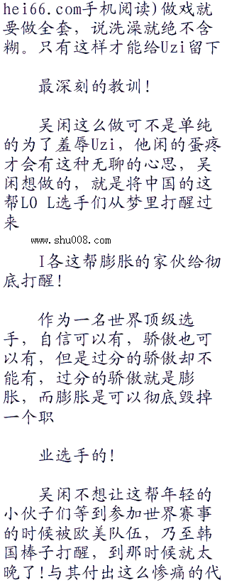 吴闲这实在向赫赫有名的,洗澡狗,致敬,换句话说,这是最犀利的嘲讽!