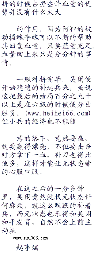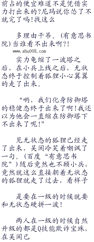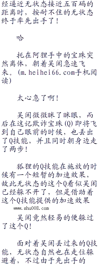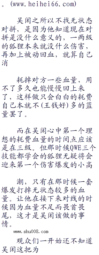 说SOLO狐狸就SOLO狐狸。吴闲也不是怕事犹豫的人,反正选个狐狸来和吴闲SOLO,无状态只会有一个结果,那就是输的更惨罢了!