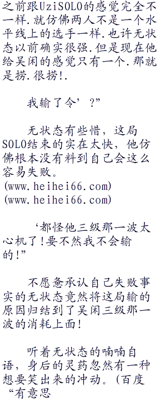随手发了一条信息过去,吴闲便按下ESC键退出了游戏。怎么说呢,和无状态的这场SOLO实在是太令吴闲失望了。