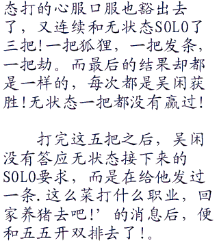 谁知道这个闪现竟然正好撞在对方的〔技能魅惑上!这下就没办法了,无状态的血量本就不多,现在又将吴闲的连招吃了一个满,纵使吴闲没有回家补充装备,身上只有一个多兰戒,但即便这样,这套技能所造成的伤害