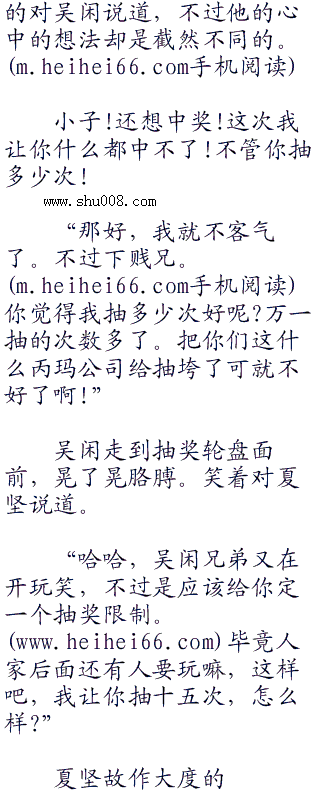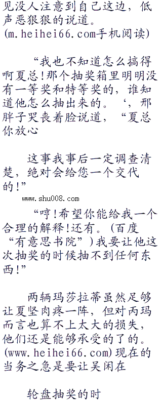“夏总!你放心。这个轮盘抽奖一定没问题的!他们不会抽到任何大奖的!”