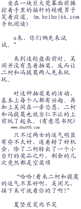 神情恍惚的在前面带着路,没一会夏坚便领着吴闲和二柯冯提莫三人来到了轮盘抽奖区。