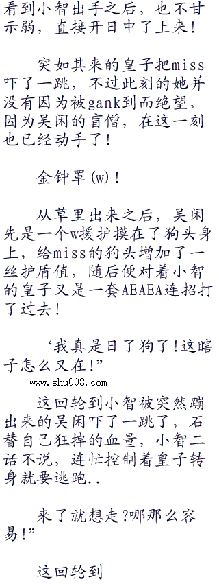 此刻吴闲的瞎子竟然就蹲守在上路靠近蓝色方的第一片草丛里!而且借刚刚猴子丝毫没有发现吴闲的样子,吴闲在这里应该已经蹲了好久了!最起码比小智来的要早!