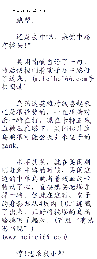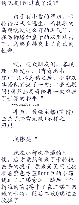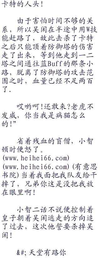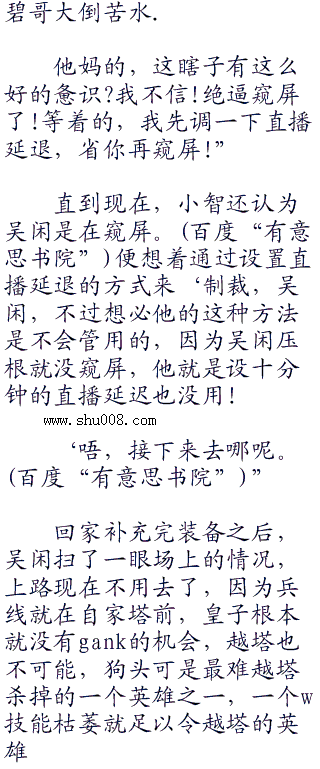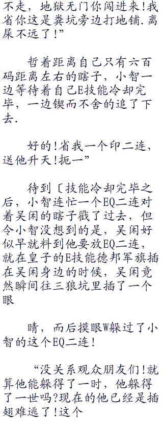 ss反应倒也不慢,见自己竟然没死,连忙头也不回的往防御塔下逃去,而碧哥的猴子,因为被吴闲红buff加E技能减速钻住的关系,所以竟然和ss之间的距离越拉越远,追不上了!