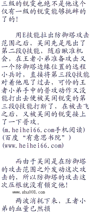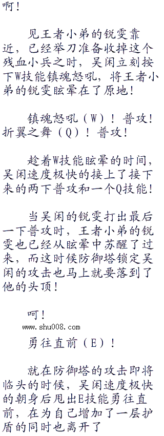 吴闲轻微的摇了摇头。以为在塔下就能安心的补兵发育了?想的美!