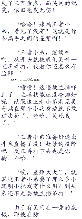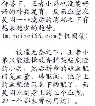 口头上安慰了自己两句,王者小弟便将注意力全都集中到了推到塔下的小兵身上来,现在他要做的事情就是稳稳的把这些小兵全都收入囊中。