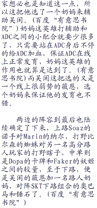 ‘是啊,对面可是SKT的Bang和Wolf,拳头现在都把他俩吹到世界前三下路组合了,也不知道直播和普通的路人玩家组队能不能抗衡他们。有意思书.院首发’